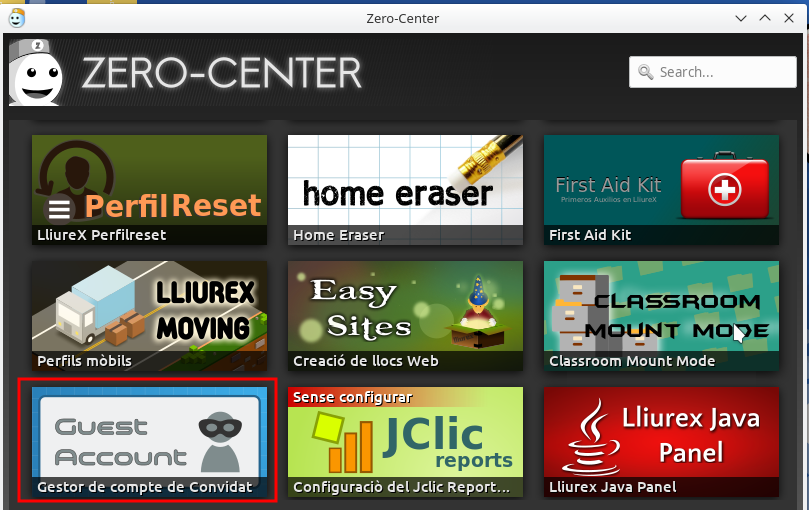 Una vegada dins del Zero-Center cal executar el zomandament de Guest Account que es pot trobar en la secció de “Configuració”.
