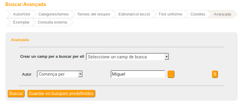 - En la pantalla següent, seleccionem un camp per a la busca i polsem el botó Busca.