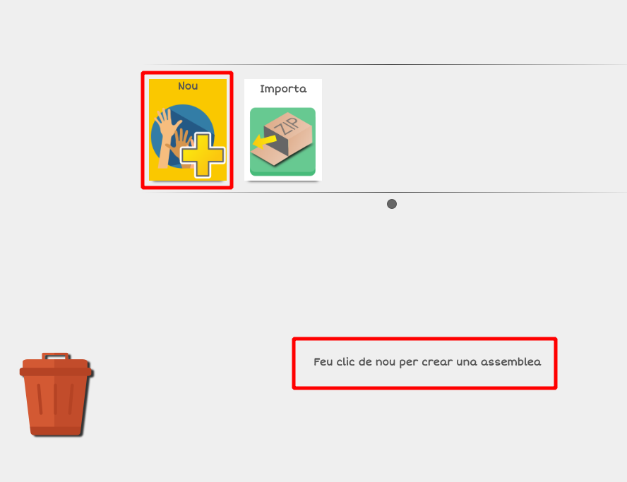 Com que és la primera vegada que obrim l'aplicació, seleccionarem generar una assemblea nova. Ho fem amb doble clic perquè aparega el menú inferior, llevat que vulguem importar una generada anteriorment.