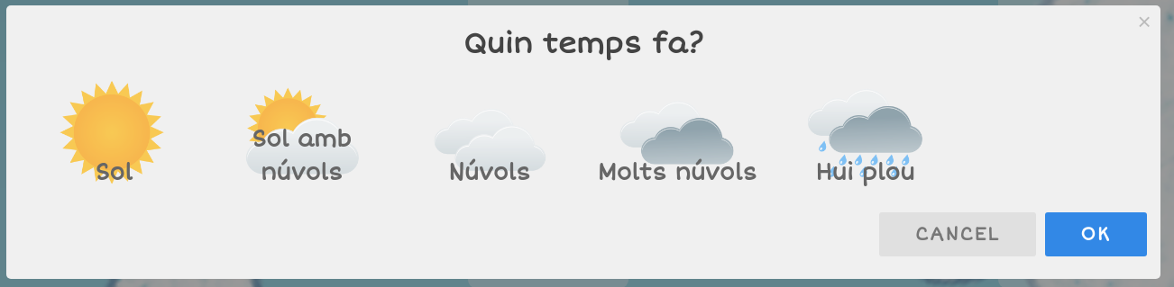 La selecció del temps ve prefixada amb uns valors que, per defecte, no inclouen la neu, però en la part d'edició si podem afegir-la o i fer-la visible.