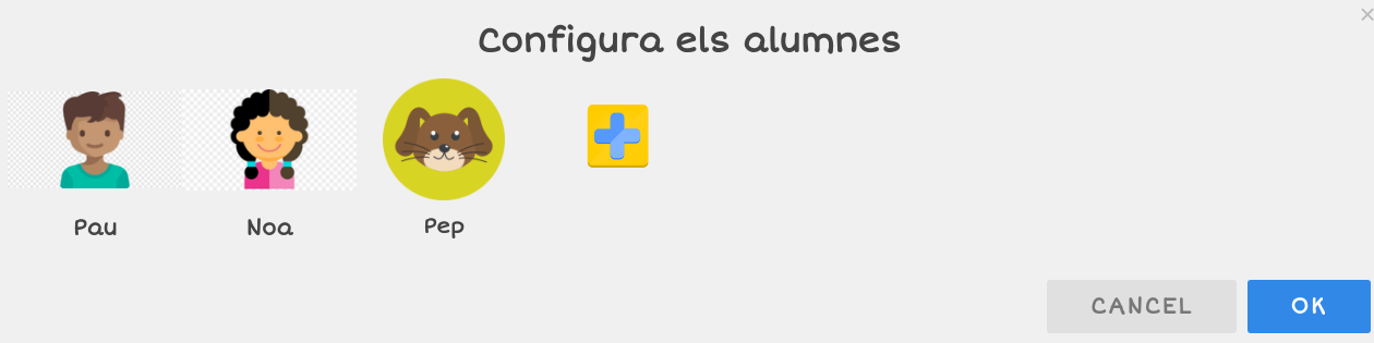 Ara, dins del nou menú que ens apareix, fem clic en Afegir usuari i, a l'hora de generar-lo, li posem un nom i triem un avatar que se'ns proposa o bé podem afegir-ne un descarregat anteriorment o fins i tot posar les fotos d'alumnes o professors o professores prèviament escanejades.