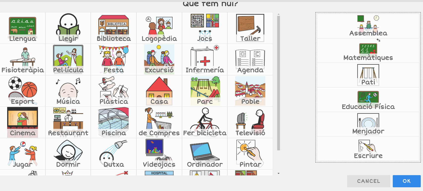 Aquest altre mòdul facilitarà que els alumnes entenguen com esdevindran les activitats que realitzarem i l'ordre. D'aquesta manera entendran millor l'horari de classe.
