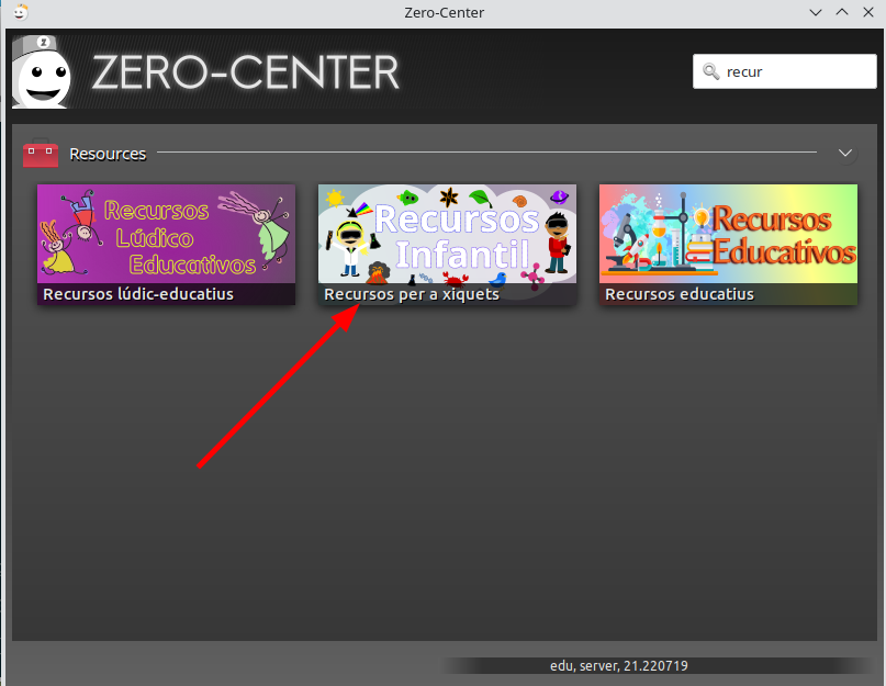 La instal·lació de l'aplicació podem fer-la d'una manera senzilla des del Centre de Control de LliureX (Zero-Center) en la secció de Recursos: