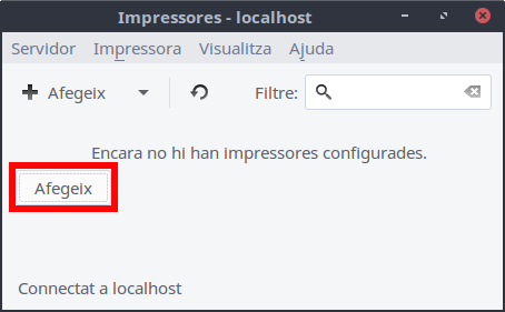Per a iniciar l'Assistent d'impressió anem a Inici > Ajutaments > Impressores