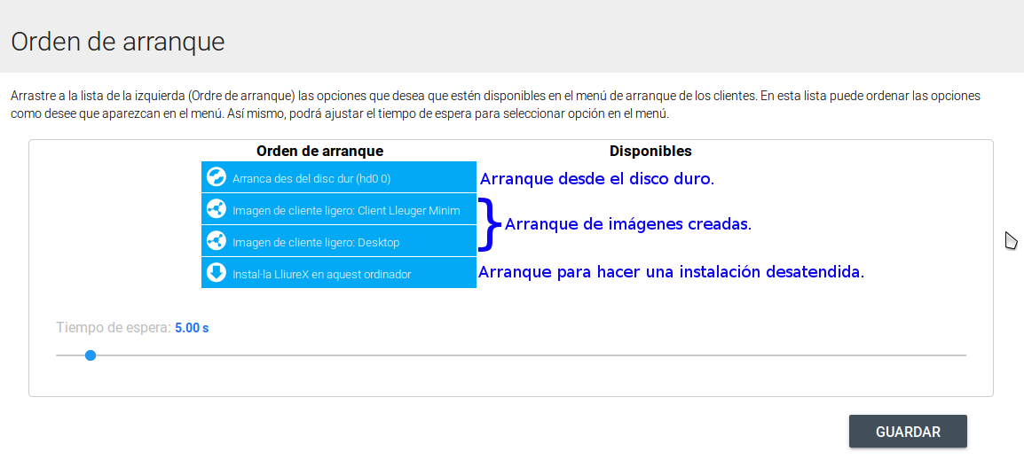 | Bootmanager | configurar las diferentes opciones de inicio de los clientes. |