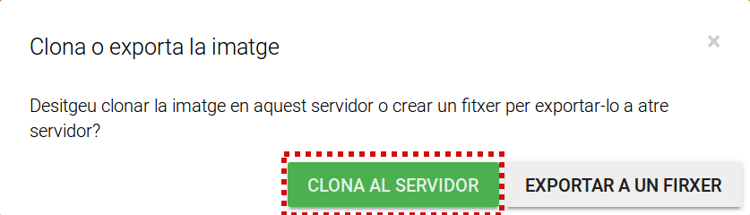 Ens apareixerà una finestra i farem clic al botó Clona al servidor.