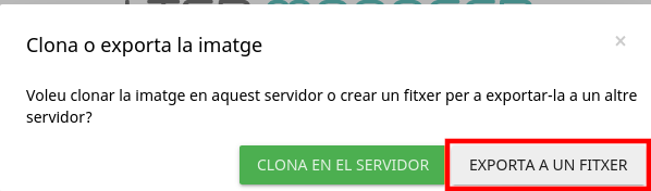 Apareixerà una finestra amb dues opcions, clonar o exportar a un fitxer, farem clic a Exporta a un fitxer. A continuació, apareixerà una finestra per a donar un nom i una descripció al fitxer.