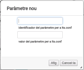 A més, si tenim coneixements avançats i volem optimitzar el rendiment dels clients, podem afegir paràmetres nous per mitjà del botó Afig un nou paràmetre de configuració. Si el polsem, s'obri una finestra en què podem introduir el nom del paràmetre i el valor. Els paràmetres possibles els podem trobar en la documentació d'Ubuntu: http://manpages.ubuntu.com/manpages/raring/man5/lts.conf.5.html.