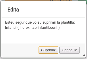 Per últim, tenim l'opció Elimina, la qual esborra una plantilla de la llista, encara que abans mostra un diàleg de confirmació.