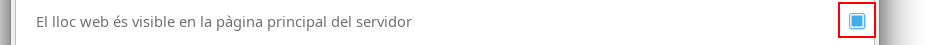 - Marca (Check) per a mostrar/ocultar el lloc: permet mostrar o ocultar el lloc en la pàgina principal del servidor. En crear un lloc, apareix marcat per defecte. Si es vol que el nou lloc no es mostre, caldrà fer clic sobre la marca per a desmarcar-lo.