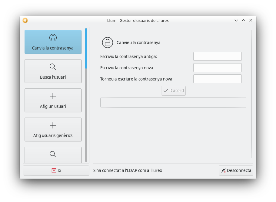 - Canviar la contrasenya de l'usuari
