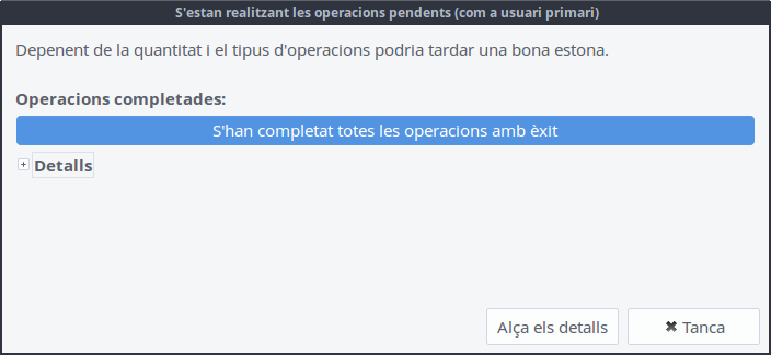 Aleshores, apareixerà una finestra d'informació sobre les accions que va realitzant fins que acabe.