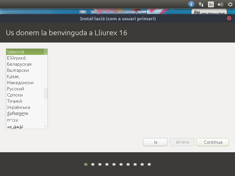 El primer que hem que fer és triar la llengua amb què volem seguir el procés d'instal·lació: