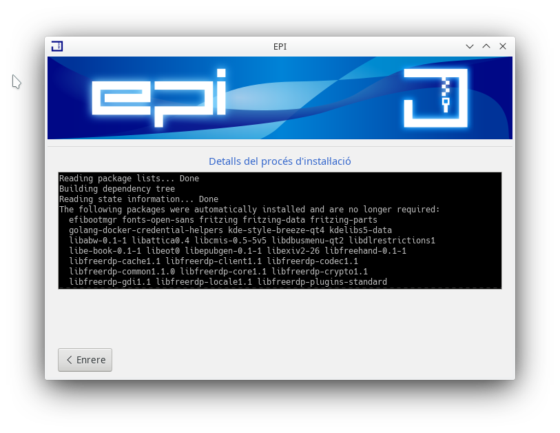 Després de la selecció, ens apareixerà la finestra de EPI amb el paquet a instal·lar