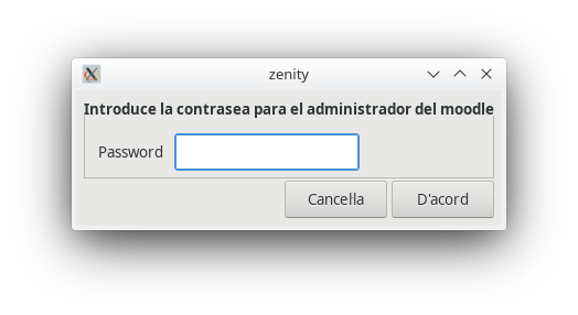 En un determinat moment, es mostra un altre diàleg per a demanar-nos la contrasenya d'administrador del Moodle. És molt important fixar una contrasenya que puguem recordar fàcilment, ja que en cas contrari tindrem problemes d'accés com a usuari administrador.