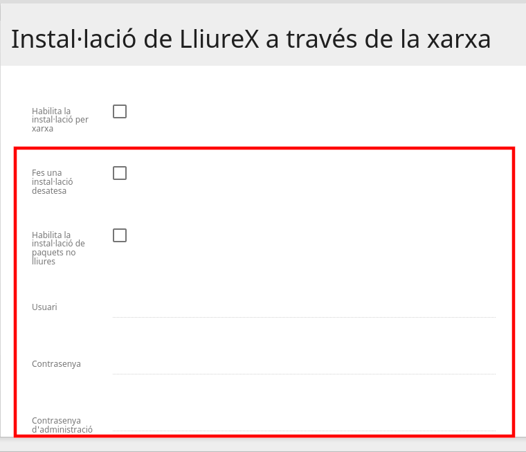 | Realitza una instal·lació desatesa | Hem de marcar aquesta opció si volem fer una instal·lació desatesa.. |