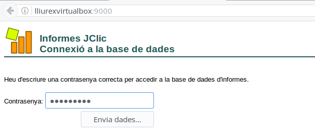 Llavors s'obrirà una finestra del navegador en què ens demanarà la contrasenya de la base de dades: