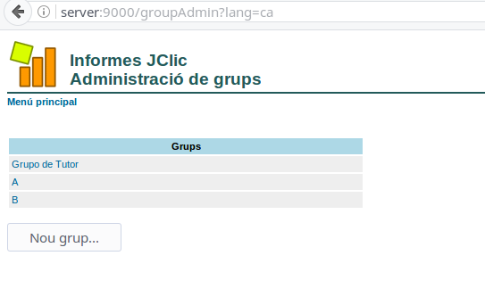 Una vegada tenim configurat el JClic en tots els clients, en reiniciar-lo ens pareixerà la pantalla següent en la qual seleccionarem el grup: