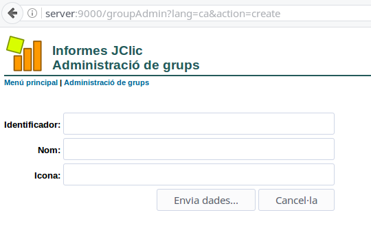 I afegim els paràmetres necessaris per a crear el grup i fem clic a Envia dades: