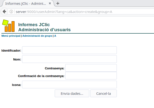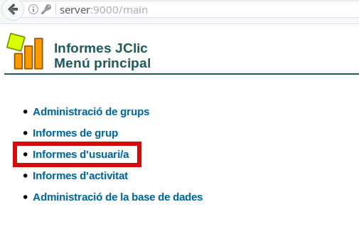 En aquests moments ja tenim el servidor en funcionament, però abans de començar a fer activitats cal donar d'alta els usuaris que volem que apareguen en l'informe.