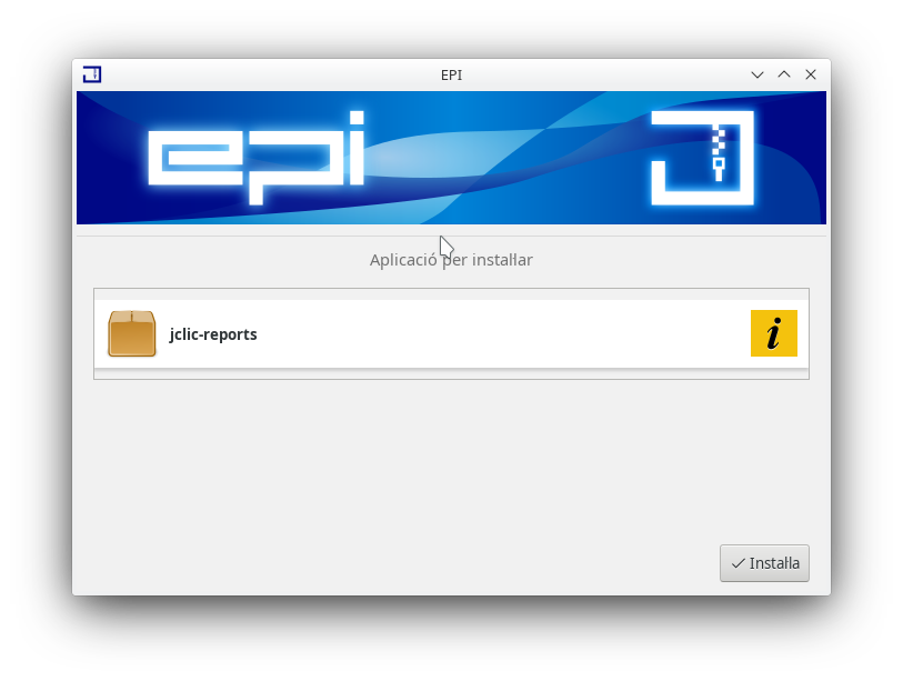 Apareixerà la finestra d'EPI. Fent clic sobre Instal·lar començarà el procés d'instal·lació