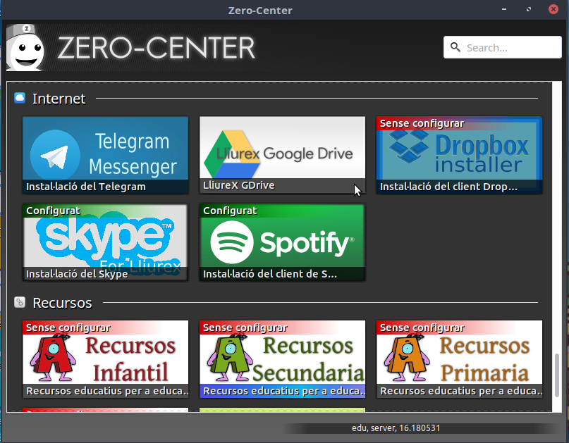 Per a iniciar el LliureX Drive per primera vegada, anem a Inici>Administració de LliureX>Zero Center, centre de control de LliureX i polsem sobre la icona de LliureX Drive.