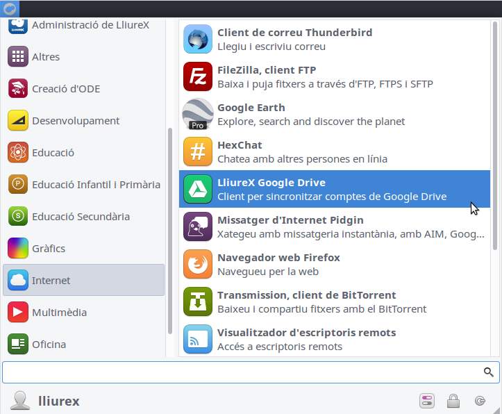 | Obri el LliureX GDrive | S'obri l'aplicació del LliureX Drive. |