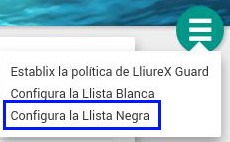 Per a accedir a la configuració de la llista negra, hem de polsar el botó de les tres línies, ubicat en la part superior dreta i seleccionar l'opció Configura la llista negra.