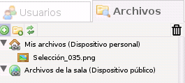 En el mateix espai on es troba el llistat d'usuaris, tenim el llistat d'arxius. Per a veure, hem de polsar la pestanya Archivos, la qual cosa fa que es mostren dos tipus d'arxius: