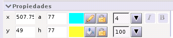En la part central, es mostra una finestra de propietats en què es poden modificar alguns paràmetres relacionats amb la ferramenta seleccionada. Entre altres trobem: