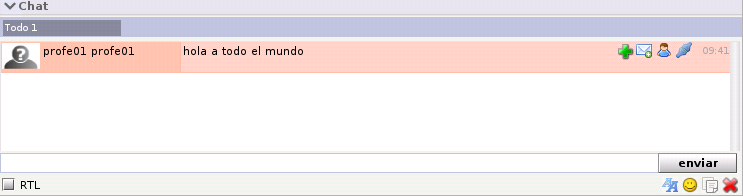 La part inferior conté un xat que permet, als integrants de la sala, canviar impressions. A més, conté una sèrie de botons, en la part inferior, que permeten: