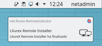 Una vez LliureX Remote Installer finalice el proceso programado, se mostrará una notificación avisando de este hecho, ocultándose el icono de la barra de menú.