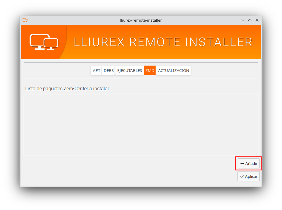 El procedimiento es el mismo que si queremos añadir un paquete deb. Pulsamos sobre Añadir y añadimos el ejecutable.