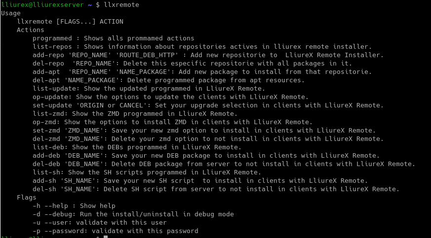 Recientemente se ha añadido al Remote Installer la posibilidad de ejecutarlo desde la terminal invocando la instrucción llxremote, de esta manera podemos acceder a todo el catálogo de opciones que tenemos disponbles desde la aplicación de ventanas.