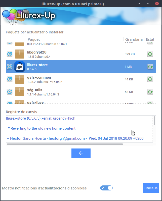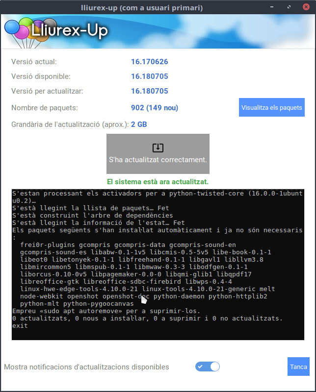 Si hi ha una versió nova del LliureX Up, en primer lloc s'actualitzarà.
