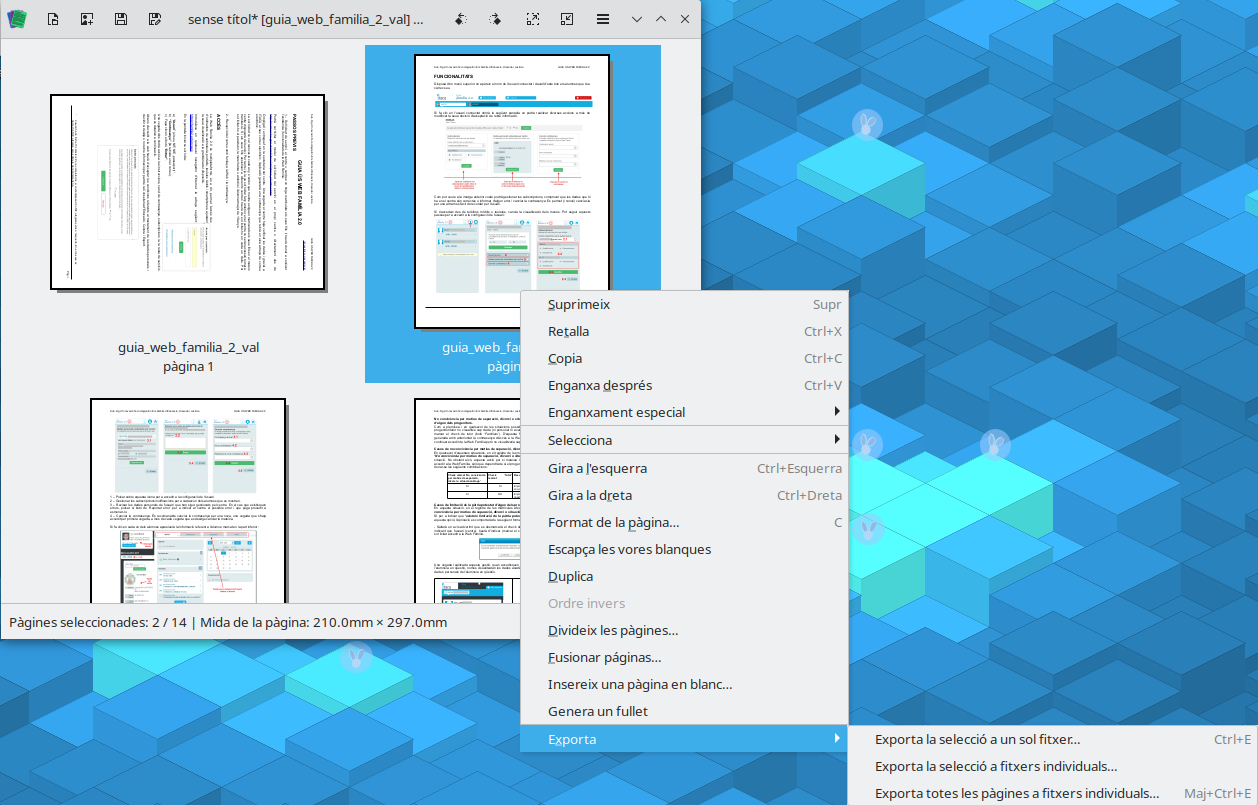 I si només vull fer ús d’una o algunes de les pàgines que tinc al document, trie l’opció «Exporta» per a afegir-la a qualsevol altra carpeta on la vulga utilitzar.