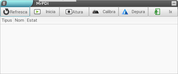 Inicialment, si no hi ha cap dispositiu connectat (PDI o tauleta) l'aplicació té aquest aspecte: