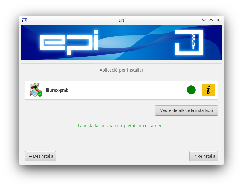 A continuació, es mostra la finestra de *EPI on s'indica el paquet a instal·lar. Fent clic a Instal·lar començarà el procés d'instal·lació.