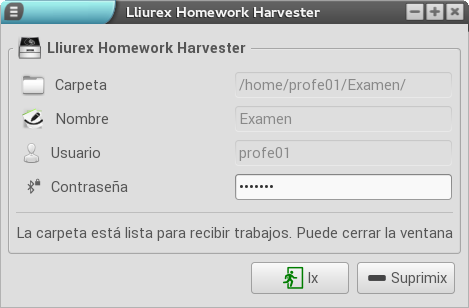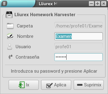 A l'hora d'arreplegar els treballs de l'alumnat, LliureX ens ofereix una eina denominada Lliurex Homework Harvester, la qual facilita en gran manera la tasca i ens permet tindre els treballs centralitzats en un únic lloc.
