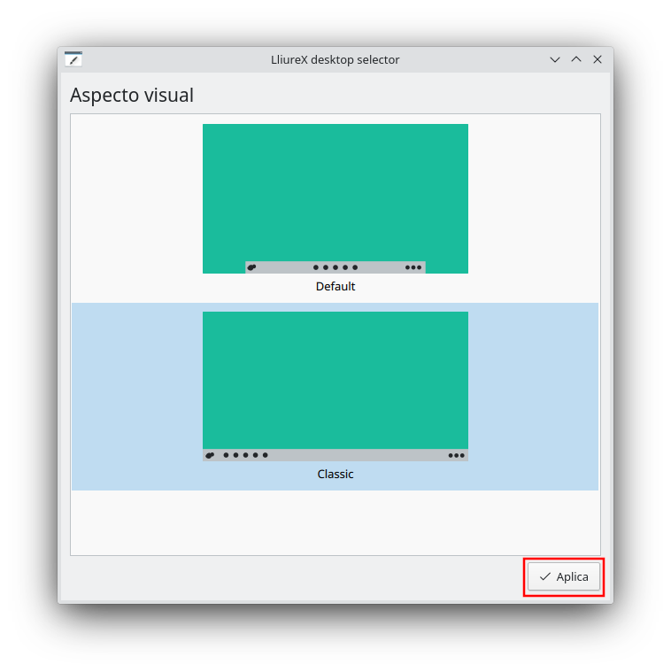 - Selecció d'aspecte visual en LliureX 21