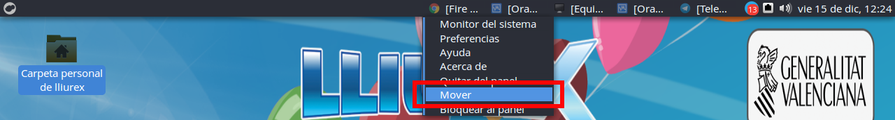 Así, situamos el ratón al inicio de la primera ventana que nos aparece. Tienes que poner el ratón justo al principio sin seleccionar la primera ventana. Y nos aparecerá el siguiente menú. Clickamos sobre Mover: