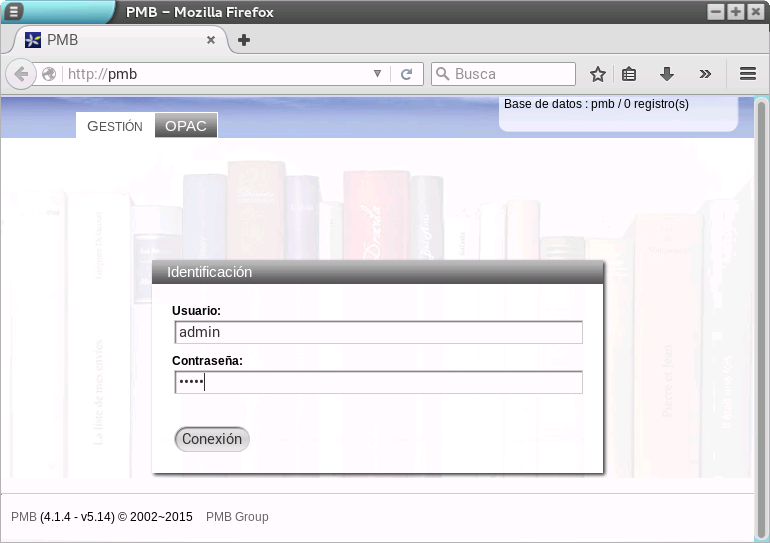 Lo que hace es abrir el navegador indicando la dirección del PMB en nuestro equipo. En el aula LliureX o en la instalación de bibliotecas la dirección es :