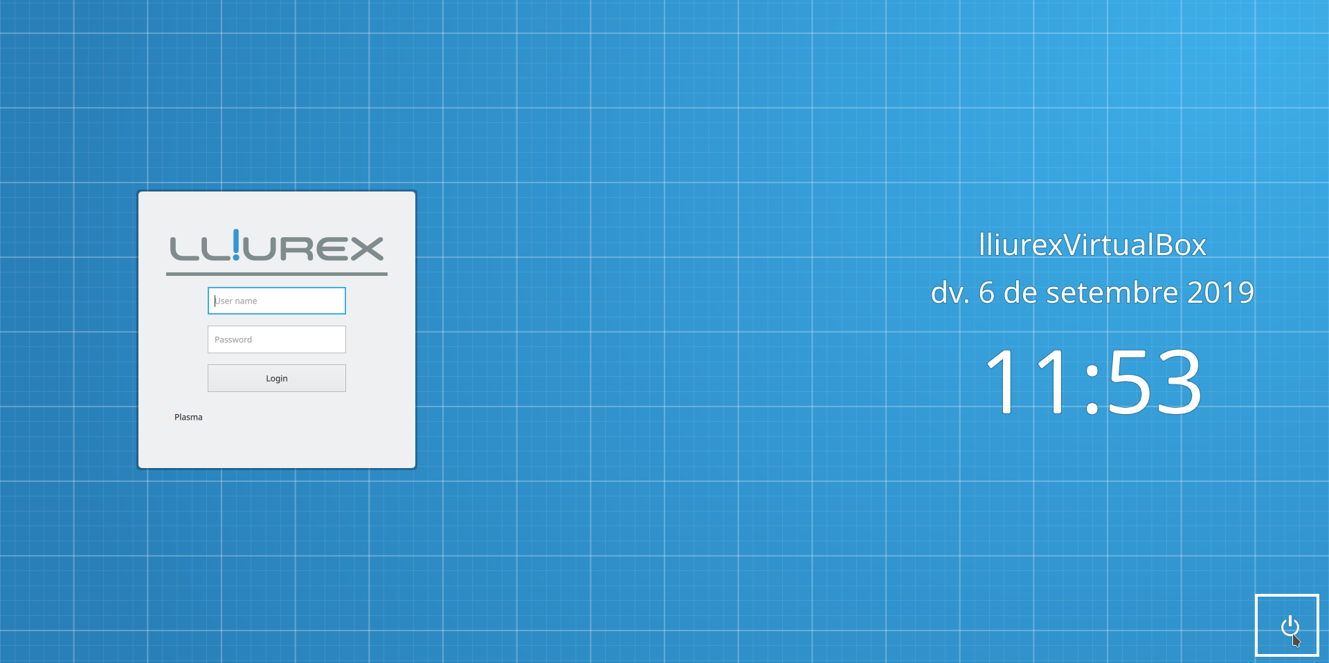 Por último se hará clic sobre el botón de Apagado que aparece en la esquina inferior derecha de la ventana de login