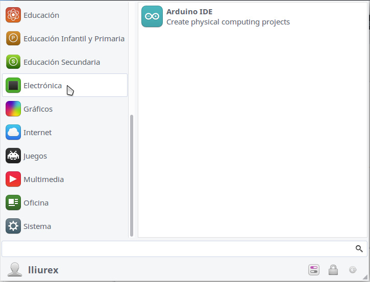 Una vez instalados los paquetes podemos encontrar el IDE en el menú Inicio > Electrónica > Arduino IDE.