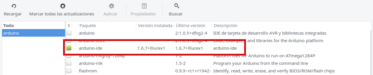 La otra opción, y la más recomendable, es instalar solamente el paquete arduino-ide, ya que este paquete es el más actualizado y el equipo de LliureX ha corregido algunos errores de permisos que solían aparecer.