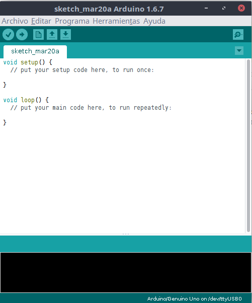 Cuando accedamos al Arduino IDE (version 1.6.7) nos encontramos con al siguiente ventana: