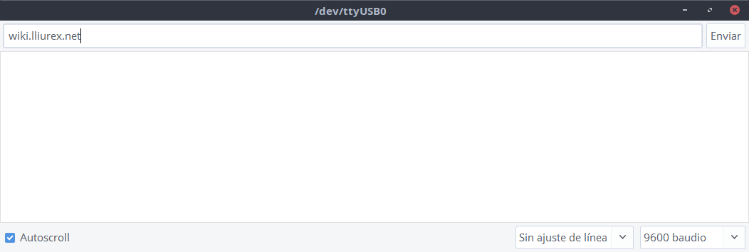 El programa nos permite enviar cadenas de texto a la pantalla a través del puerto serie, para ello debemos comunicarnos con el programa a través del monitor serial