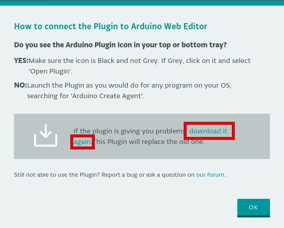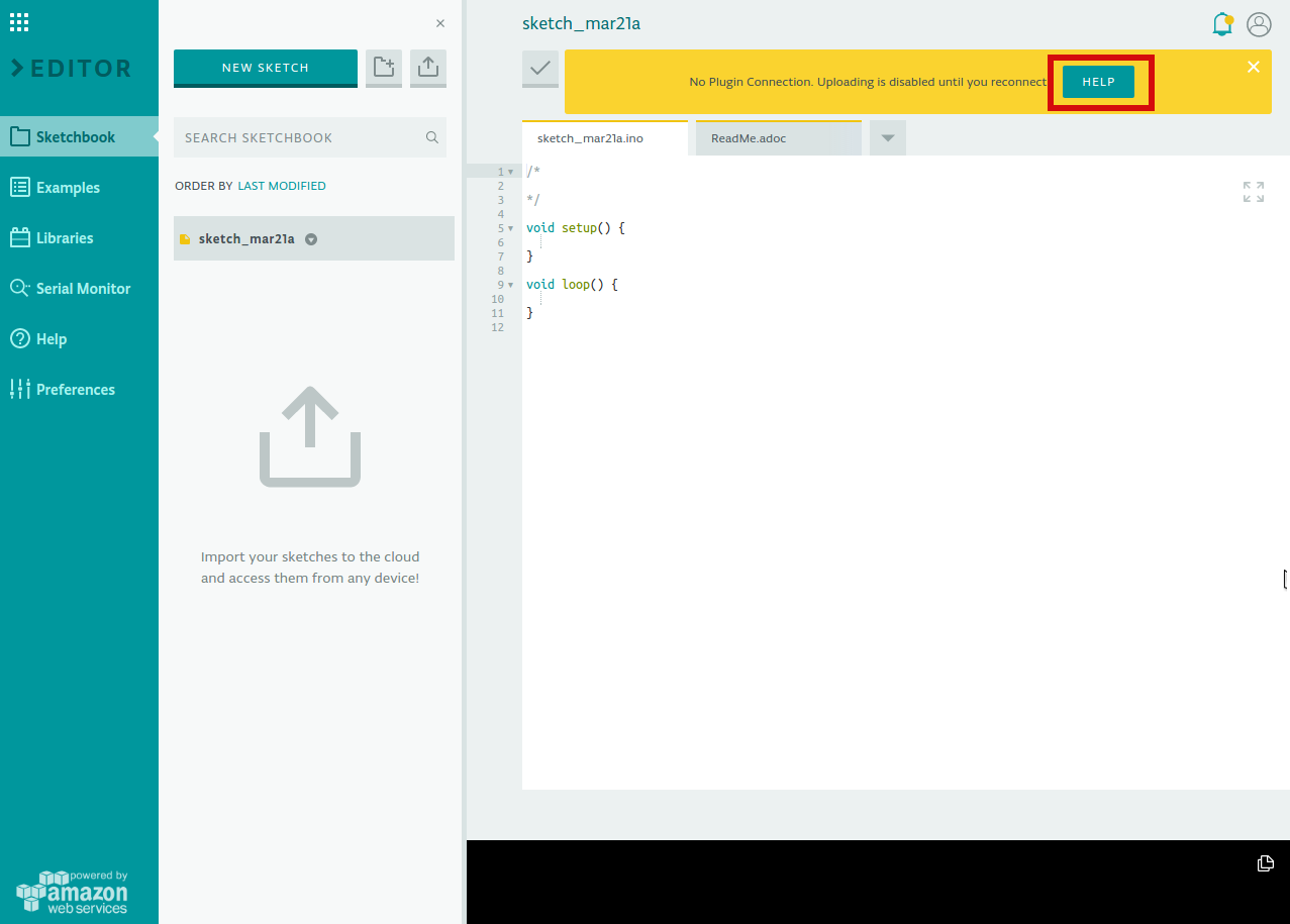 Podemos ver que no nos ha conectado. Eso es porque es necesario descargar un plug in para que el navegador pueda conectarse a nuestra placa de arduino. Para ello pulsamos sobre "help".