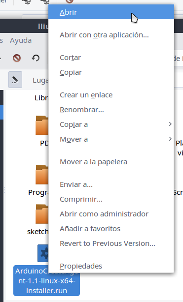 • Pulsamos sobre el botón derecho del ratón en el icono del plugin de arduino.