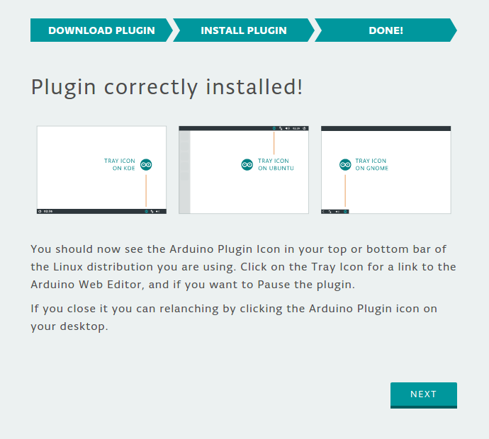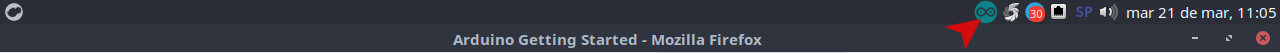 Una vez instalado podemos ver cómo nos ha aparecido un nuevo icono en la barra de navegación. Además crea un enlace en el escritorio. Si perdiésemos el enlace, el programa se encuentra en $HOME/ArduinoCreateAgent-1.1/Arduino_Create_Bridge.